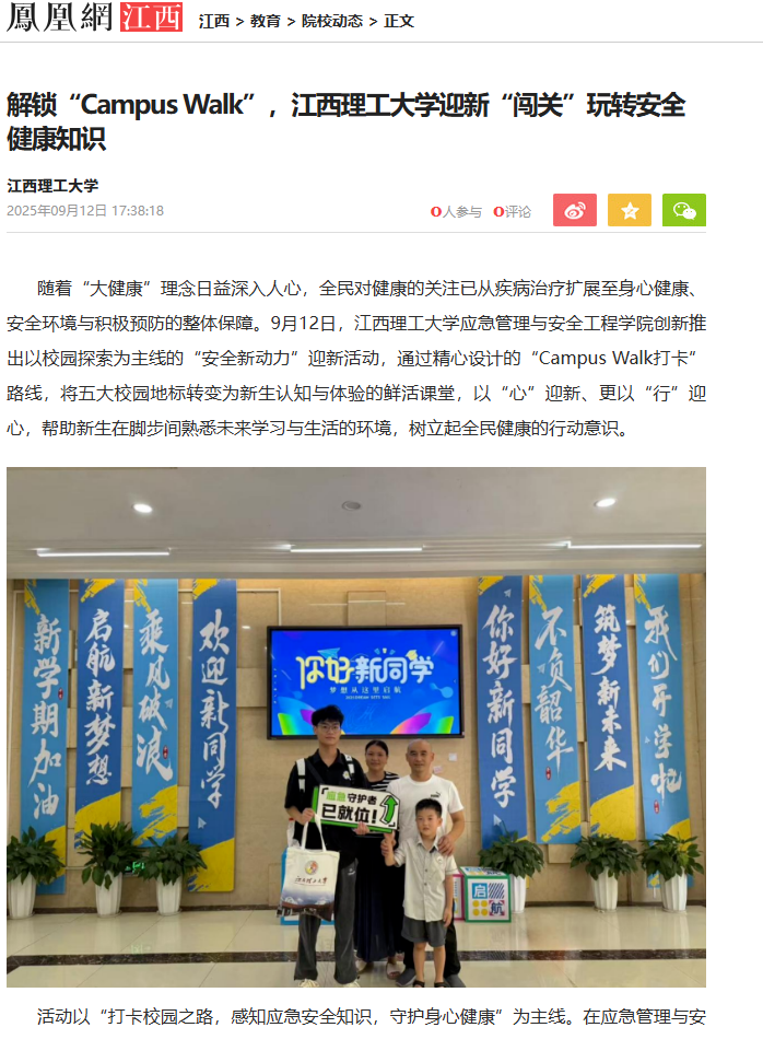 创新推出以校园探索为主线的“安全新动力”迎新活动,通过精心设计的“Campus Walk打卡”路线,将五大校园地标转变为新生认知与体验的鲜活课堂,以“心”迎新、更以“行”迎心,帮助新生在脚步间熟悉未来学习与生活的环境,树立起全民健康的行动意识。