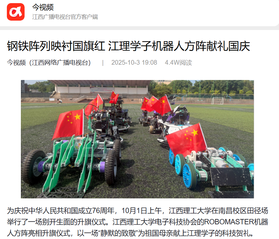 《江西网络广播电视台》:钢铁阵列映衬国旗红 江理学子机器人方阵献礼国庆