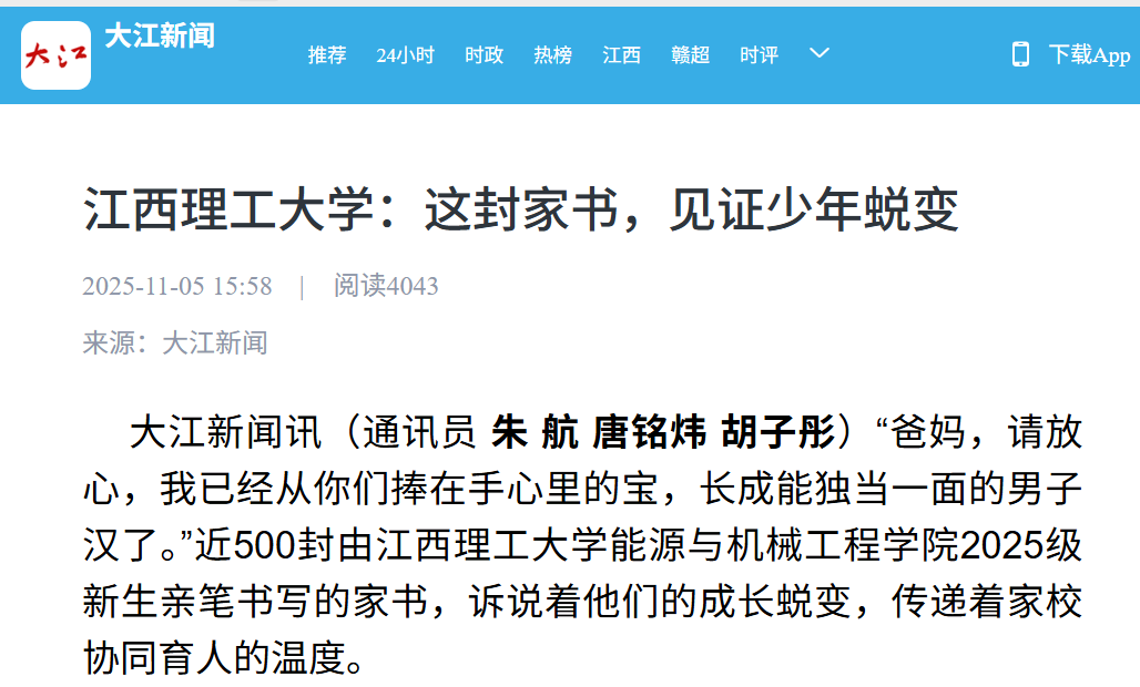 2025级新生亲笔书写的家书,诉说着他们的成长蜕变,传递着家校协同育人的温度。