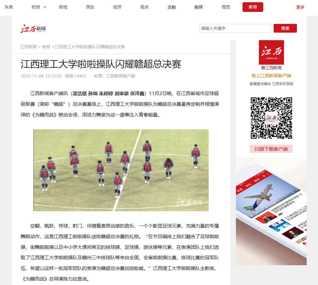 啦啦队助理教练刘炜表示:“希望通过这次表演,向全省球迷传递青春自信、团队拼搏与健康快乐的精神,也展现出在赣州这片红色土地上江理青年的奋进力量。”未来,大发娱乐