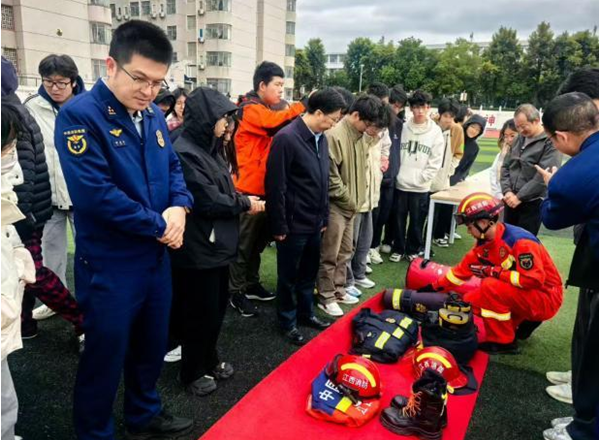 消防器材展示区俨然一座生动的微型“安全科技馆”。消防员们依次向师生演示了灭火器、消防服、水带等关键消防器材的操作方法。他们用专业的器材介绍和操作演示让在场师生迅速了解到消防器材基本知识及其在消防救援中发挥的重要作用,也为消防安全趣味运动会的顺利开展打下了良好的基础。