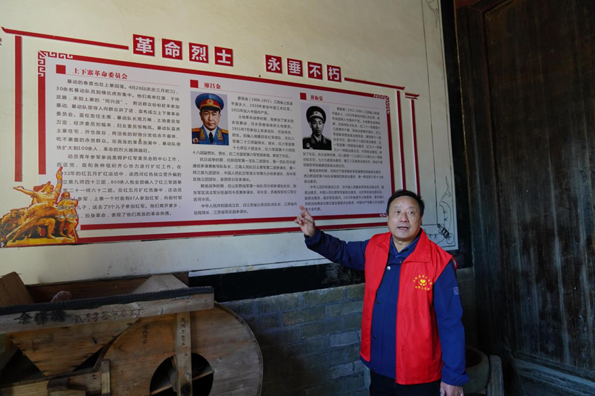“1932年红三军团在此开展革命活动,苏维埃委员何桃英与丈夫钟声厚见战士们行军脚无完履,便带领畲族乡亲连夜赶制布鞋,前后共赶制35000双。可何委员还没做完手中的第三双布鞋,就为革命牺牲了,她的丈夫也随后为信仰献身——这一针一线,织就的是军民同心的鱼水情啊!”在上寨村革命旧址,马克思主义大发娱乐