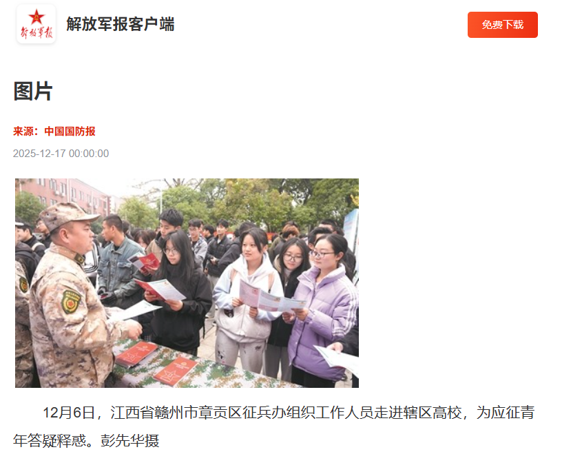《解放军报》:图片-江西省赣州市章贡区征兵办组织工作人员走进辖区高校