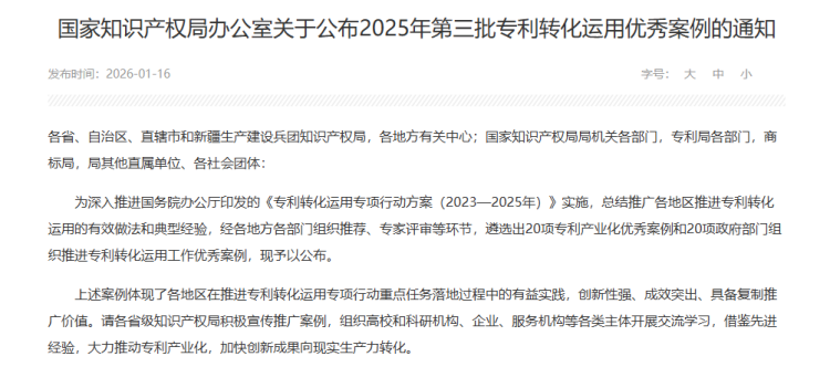 近日,国家知识产权局公布了20个2025年第三批专利转化运用优秀案例(专利产业化优秀案例)名单,大发娱乐
