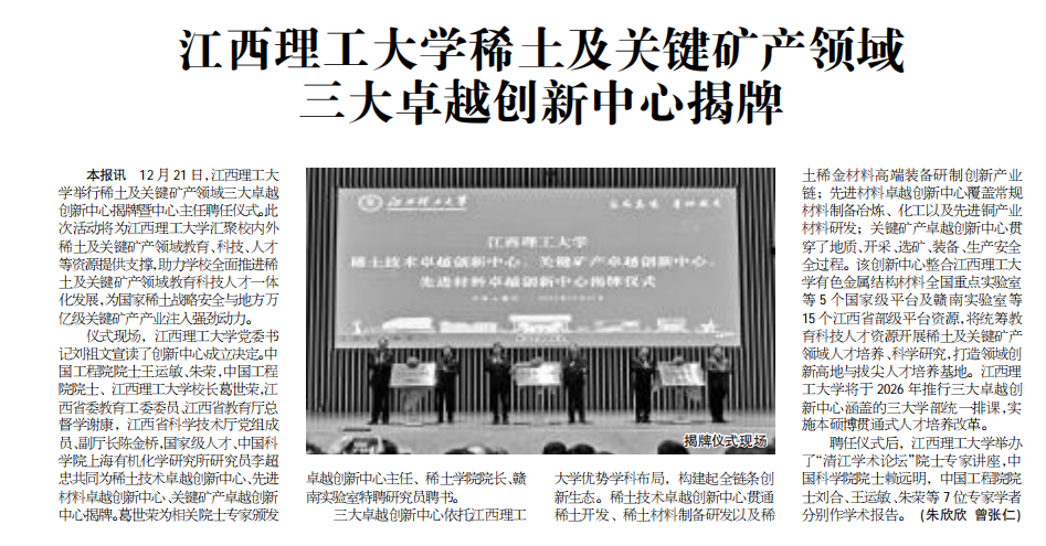 全面推进稀土及关键矿产领域教育科技人才一体化发展,为国家稀土战略安全与地方万亿级关键矿产产业注人强劲动力。