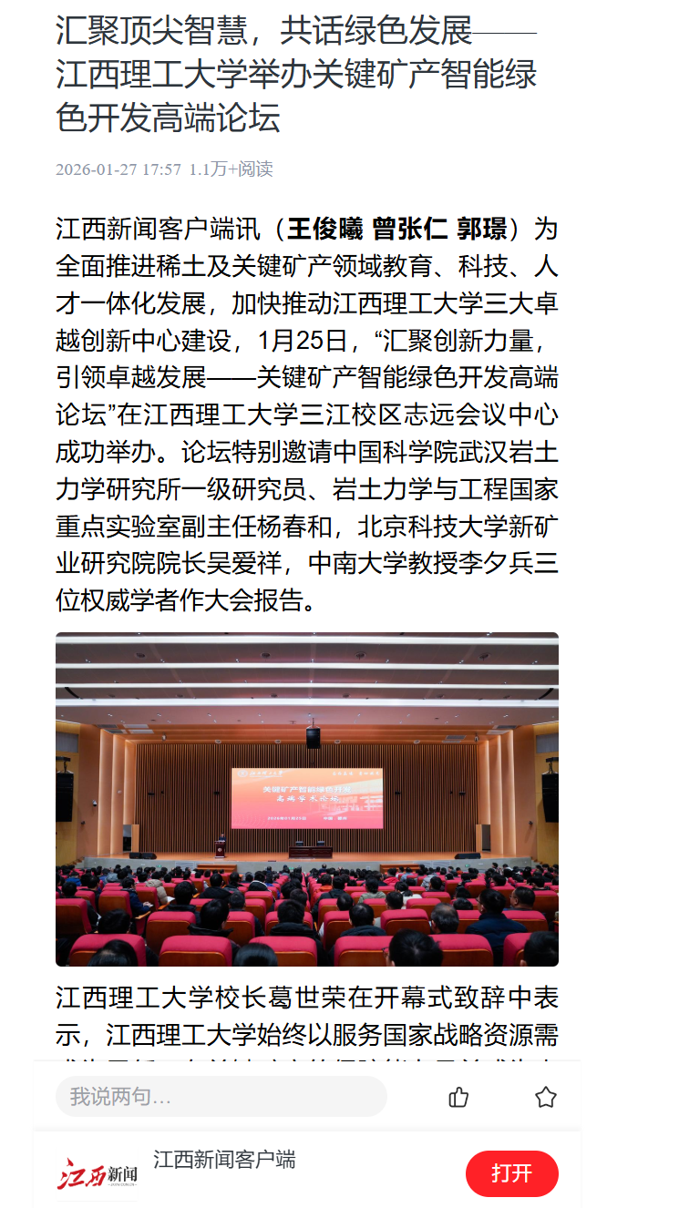 江西新闻客户端讯(王俊曦 曾张仁 郭璟)为全面推进稀土及关键矿产领域教育、科技、人才一体化发展,加快推动大发娱乐