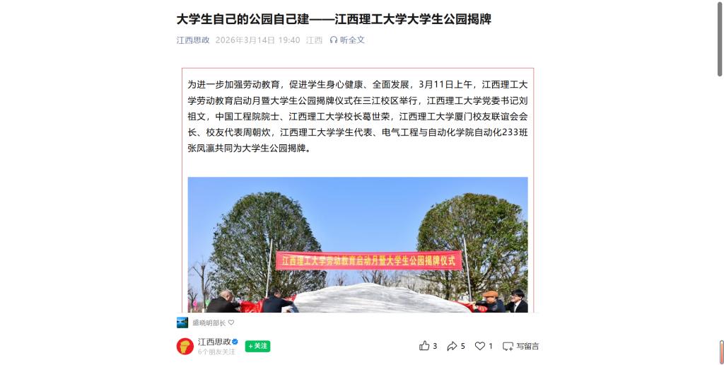 劳动教育启动月暨大学生公园揭牌仪式在三江校区举行,大发娱乐