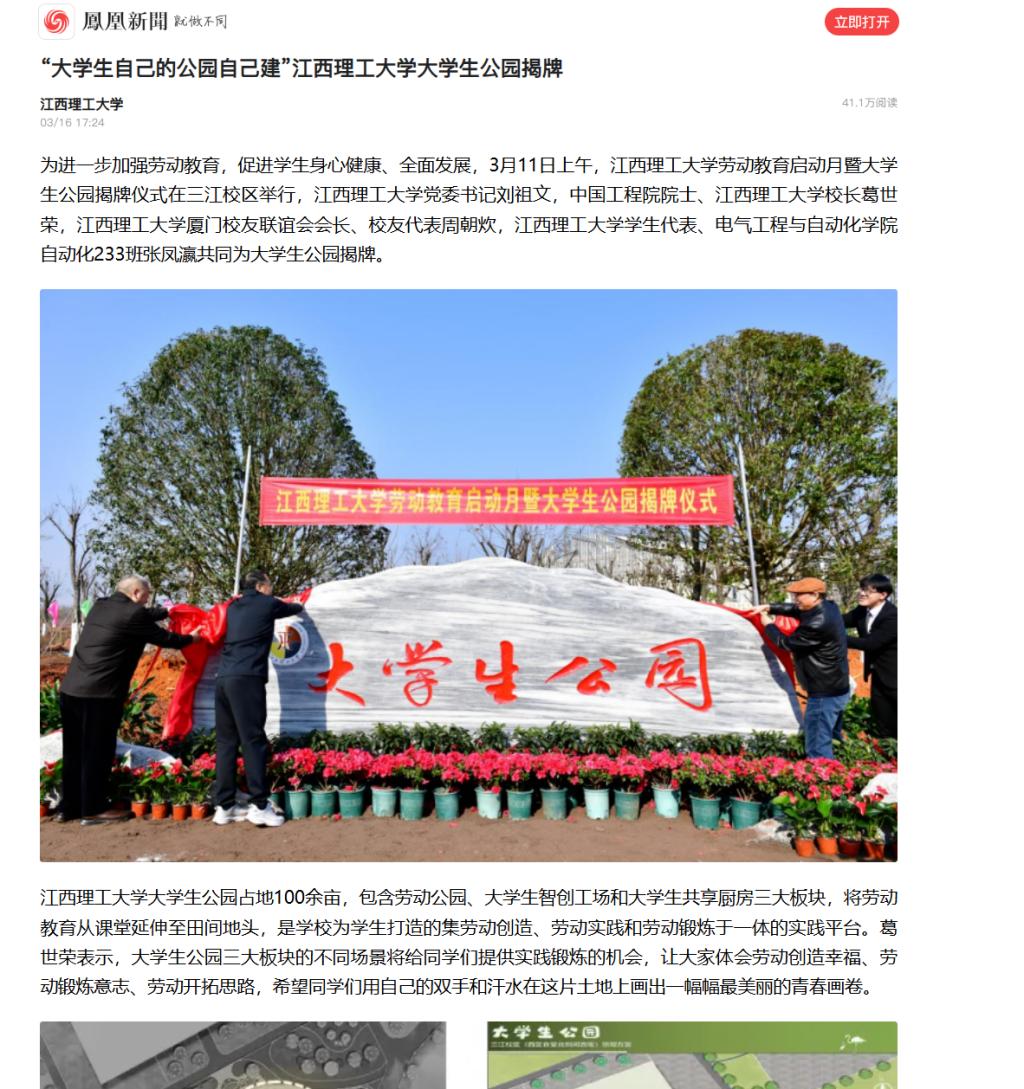 为学生打造的集劳动创造、劳动实践和劳动锻炼于一体的实践平台。葛世荣表示,大学生公园三大板块的不同场景将给同学们提供实践锻炼的机会,让大家体会劳动创造幸福、劳动锻炼意志、劳动开拓思路,希望同学们用自己的双手和汗水在这片土地上画出一幅幅最美丽的青春画卷。
