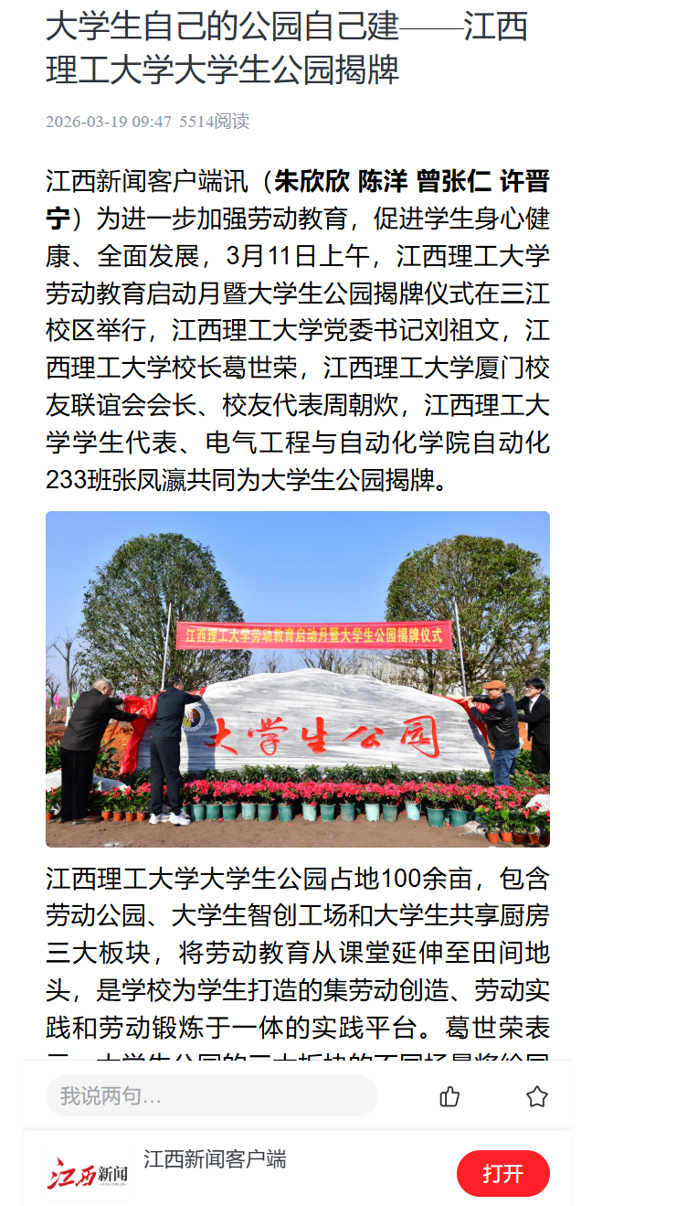 劳动教育启动月暨大学生公园揭牌仪式在三江校区举行,大发娱乐