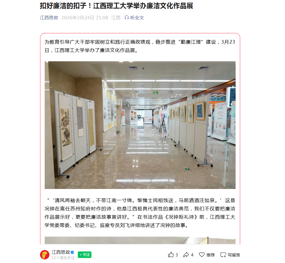 党员干部廉洁自律、担当作为的先锋本色,也承载着青年学子廉洁修身、笃行向善的青春追求。