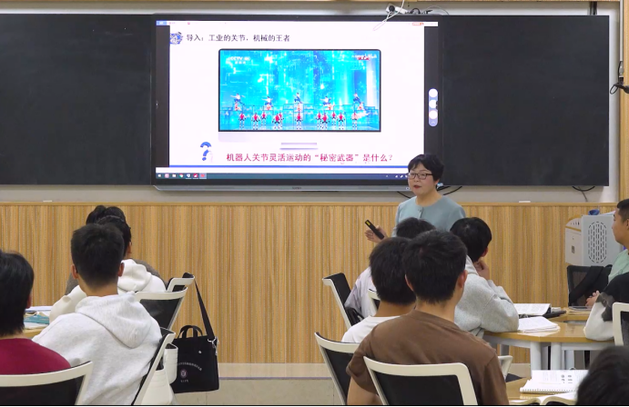课堂上,常军然老师以这一问题为起点,引导学生通过“学习通”平台展开讨论。话题一经发布,便引发热烈互动。课堂上,学生现场展示人体肩关节的6个自由度:水平摆动、侧摆臂、旋转、提拉、滑肩、回旋,生动诠释了“关节”的运动原理。常军然老师顺势引出核心知识点——轴承,正是机器人实现灵活运动的关键“工业关节”。