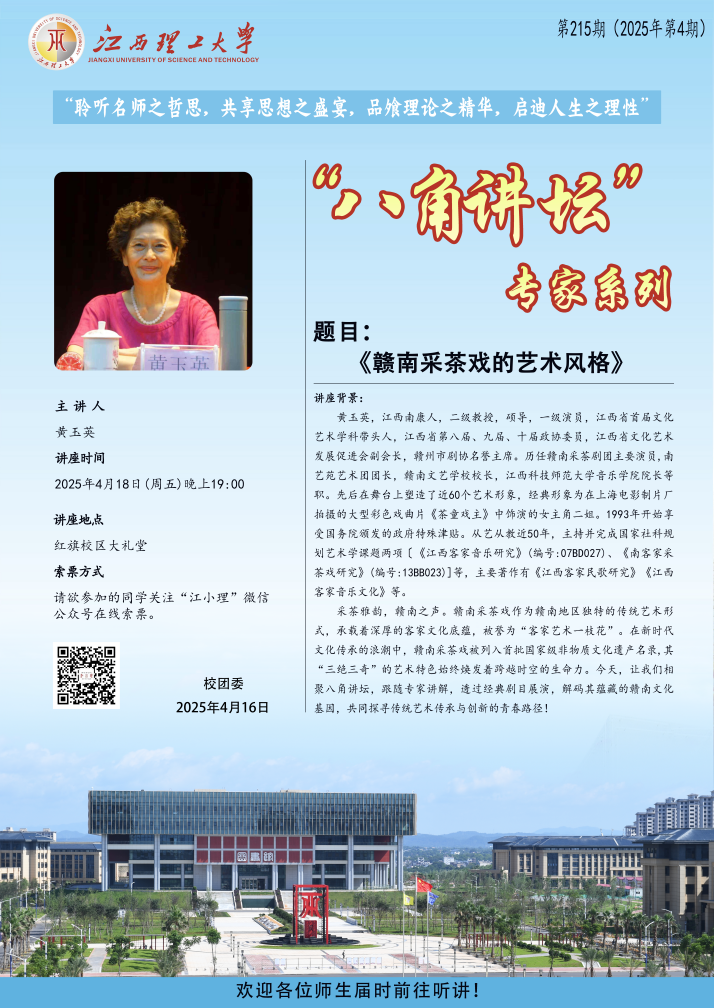 采茶雅韵,赣南之声。赣南采茶戏作为赣南地区独特的传统艺术形式,承载着深厚的客家文化底蕴,被誉为“客家艺术一枝花”。在新时代文化传承的浪潮中,赣南采茶戏被列入首批国家级非物质文化遗产名录,其“三绝三奇”的艺术特色始终焕发着跨越时空的生命力。今天,让我们相聚八角讲坛,跟随专家讲解,透过经典剧目展演,解码其蕴藏的南文化基因,共同探寻传统艺术传承与创新的青春路径!