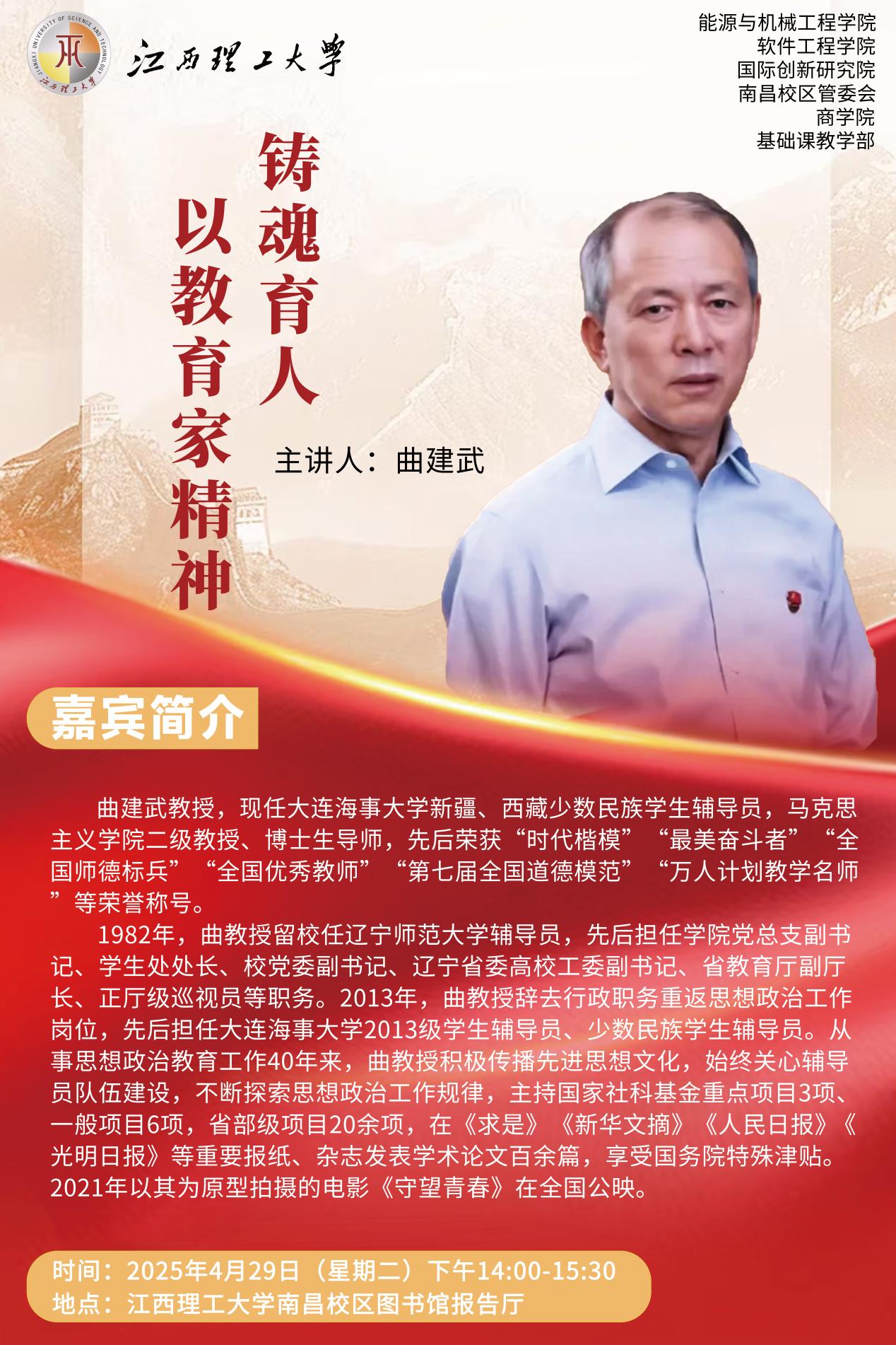主讲人:曲建武,现任大连海事大学新疆、西藏少数民族学生辅导员,马克思主义大发娱乐 二级教授、博士生导师,先后荣获“时代楷模”“最美奋斗者”“全国师德标兵”“全国优秀教师”“第七届全国道德模范”“万人计划教学名师”等荣誉称号。