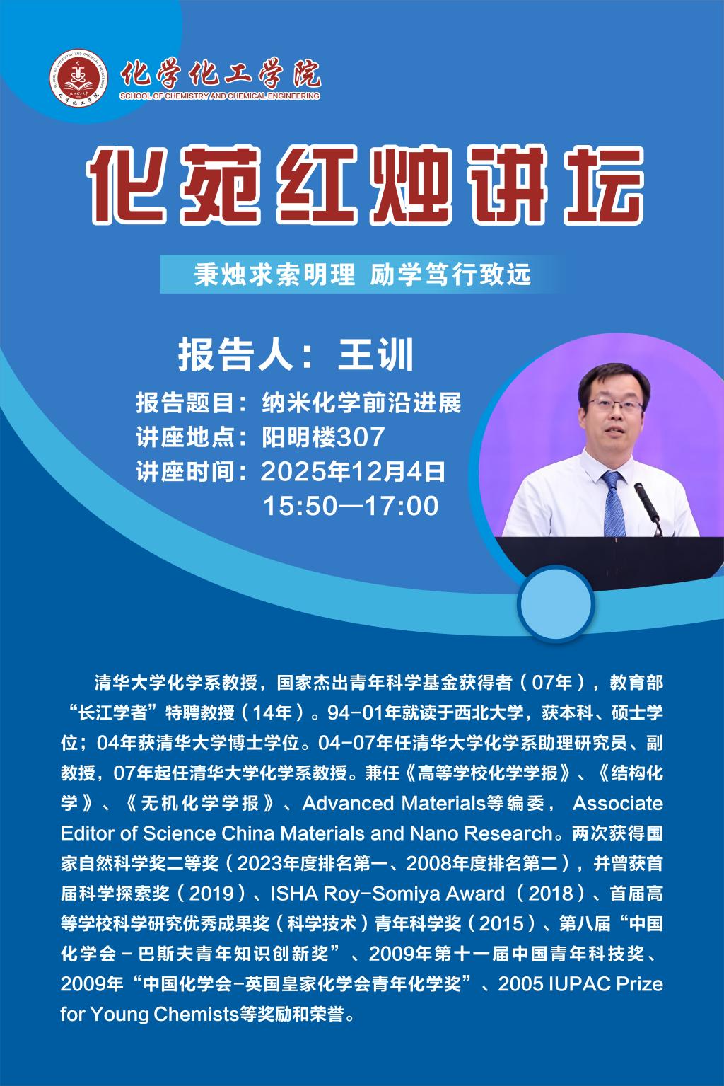 本次讲座将围绕纳米化学的最新研究进展、发展趋势及前沿科学问题展开,旨在为化学、化工、材料及相关专业学生提供学术启发与科研参考,欢迎广大师生踊跃参加!