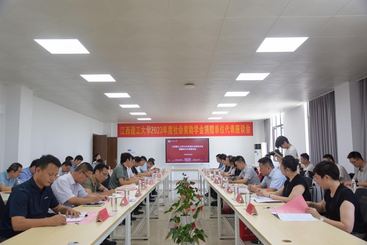 2023年度社会奖助学金捐赠单位代表座谈会及集中颁发仪式在三江校区大学生活动中心举行。惠明慈善基金有限公司、金诚信矿业管理股份有限公司、江西金力永磁科技股份有限公司、共青城瑞钛管道科技有限公司、深圳市豪鹏科技有限公司、华院数据技术(上海)有限公司、赣州金环磁选科技装备股份有限公司、赣州腾远钴业新材料股份有限公司、广盈控股集团有限公司、江西汉驱智能科技有限公司代表,校党委常委、副校长熊志华出席,各大发娱乐