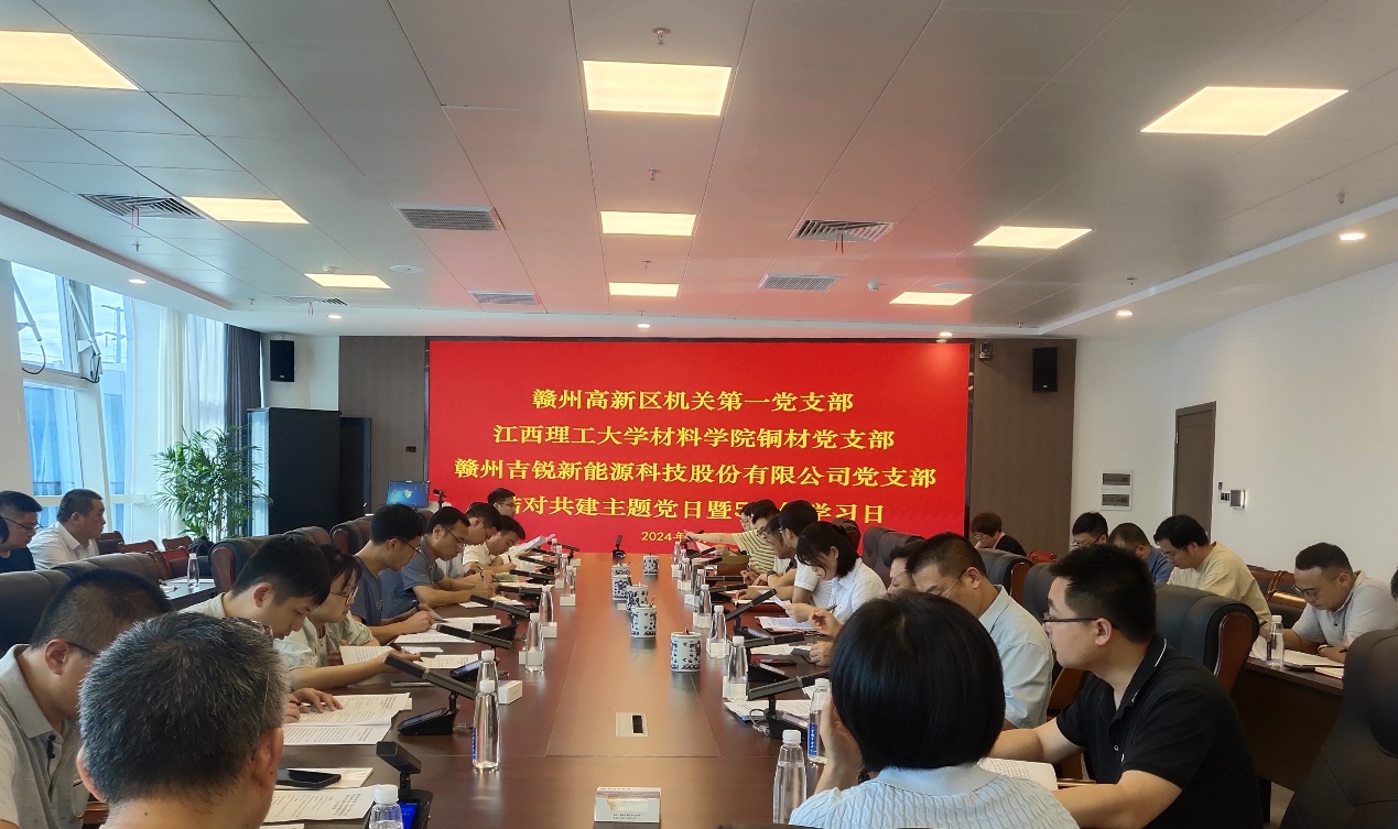铜材党支部赴赣州高新区,联合赣州高新区机关第一党支部和赣州吉锐新能源科技有限公司党支部全体党员及相关技术人员开展“学条例 守党纪 做表率”主题党日活动。