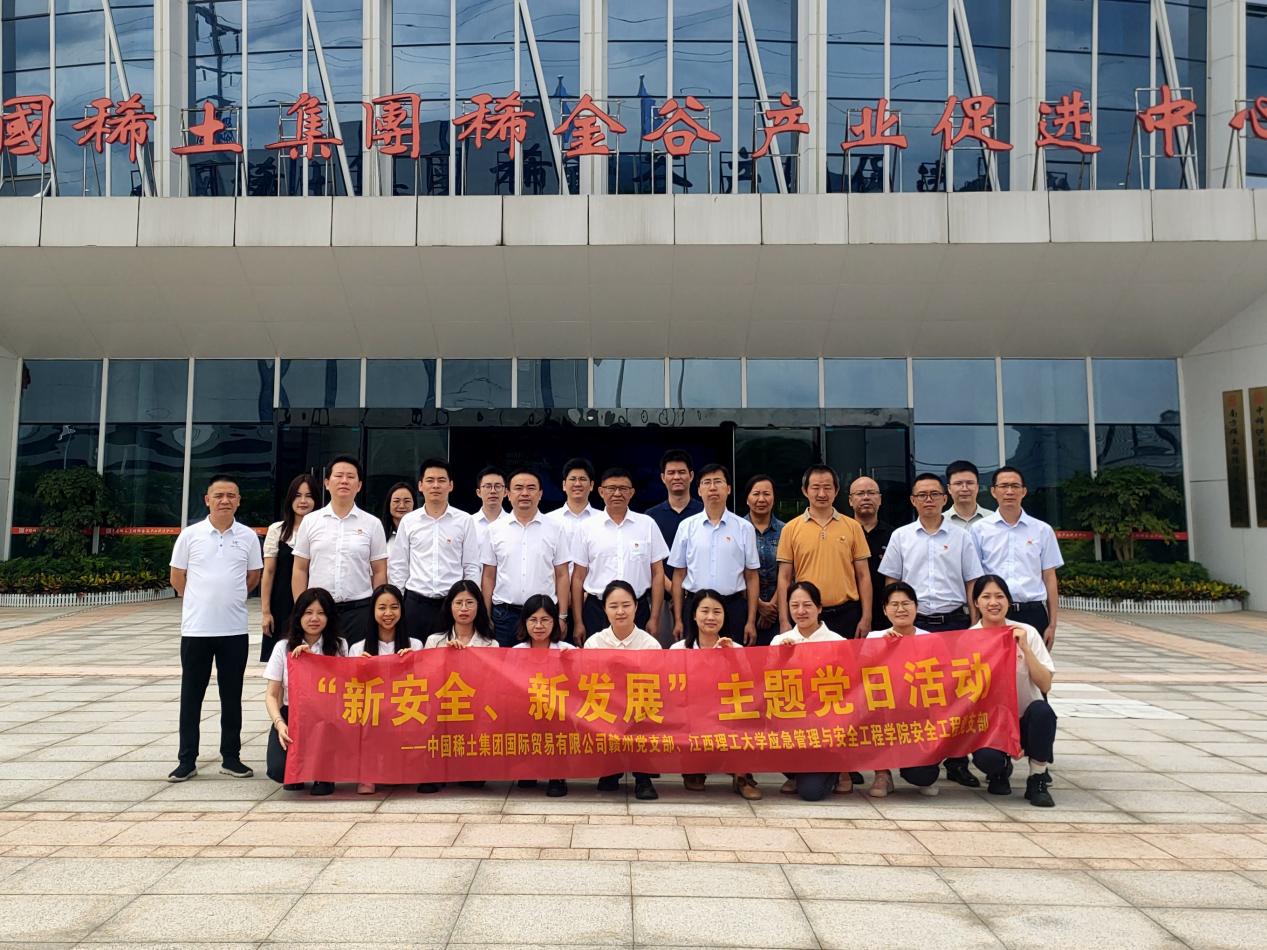 安全工程党支部前往中国稀土集团稀金谷产业促进中心,与中国稀土集团国际贸易有限公司赣州党支部联合开展“新安全、新发展”主题党日活动。此次活动旨在深入学习贯彻党的二十大精神和习近平总书记关于安全生产的重要论述,推动创新产教融合校企“双元”育人模式。
