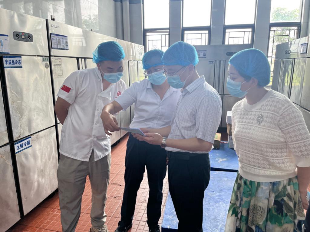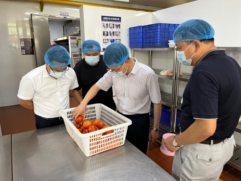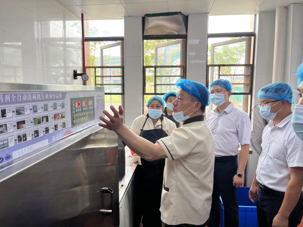 师生食堂督导调研。刘飞一行深入食堂后厨及操作间,详细听取介绍,仔细查看食材采购进货、整理清洗、制作加工、冷藏储存、餐具清洗消毒等各环节工作情况,与一线工作人员互动交流,全面了解食堂食品安全质量及相关职能部门监管等情况。