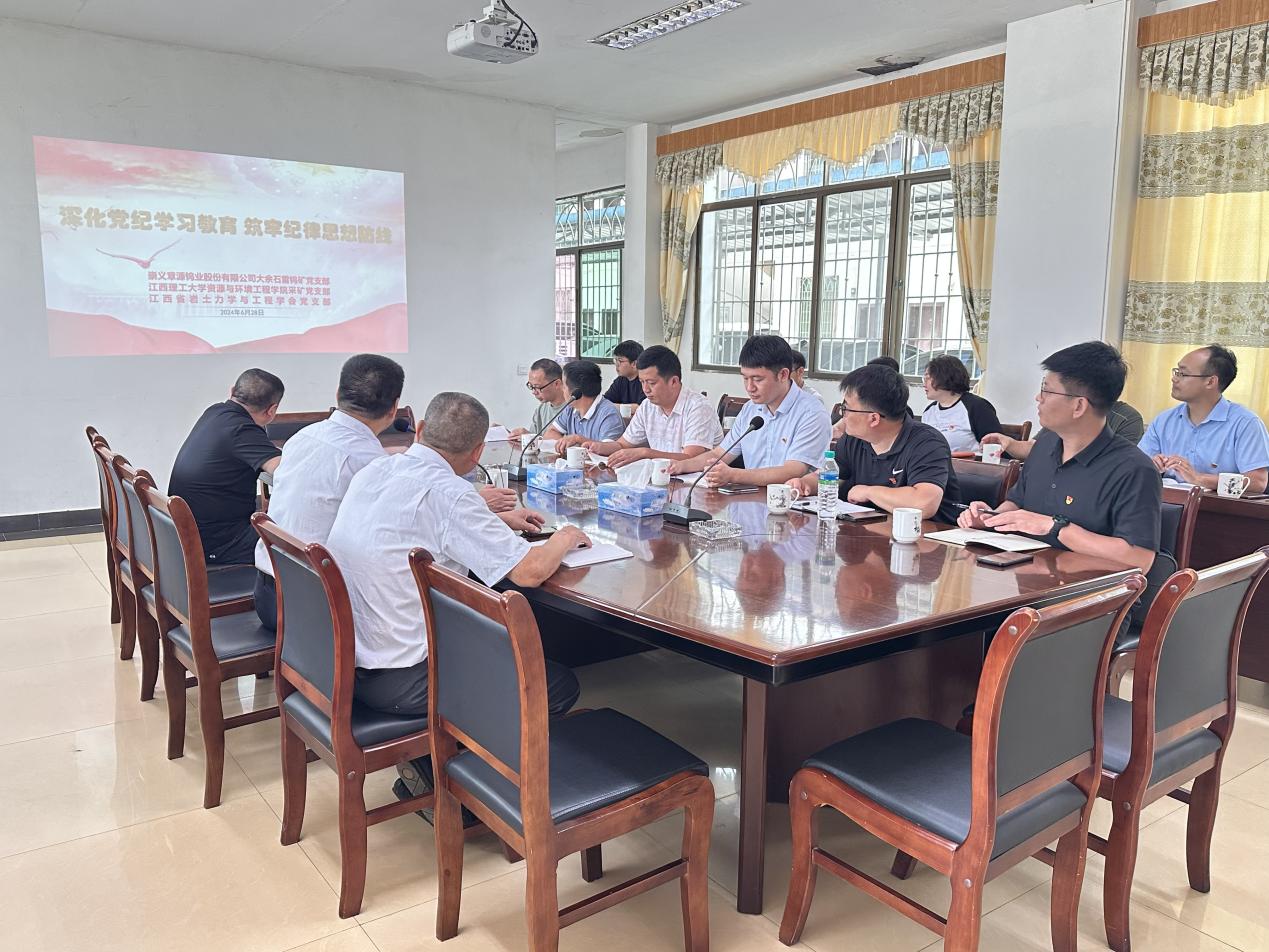 采矿党支部赴崇义章源钨业股份有限公司大余石雷钨矿,与大余石雷钨矿党支部、江西省岩土力学与工程学会党支部共同开展“1+1+1”支部共建活动,进行了主题为“深化党纪学习教育 筑牢纪律思想防线”的主题党日学习。大余石雷钨矿党支部书记黄上贵、矿长邱金铭,采矿党支部书记王石以及三个党支部党员参加活动。