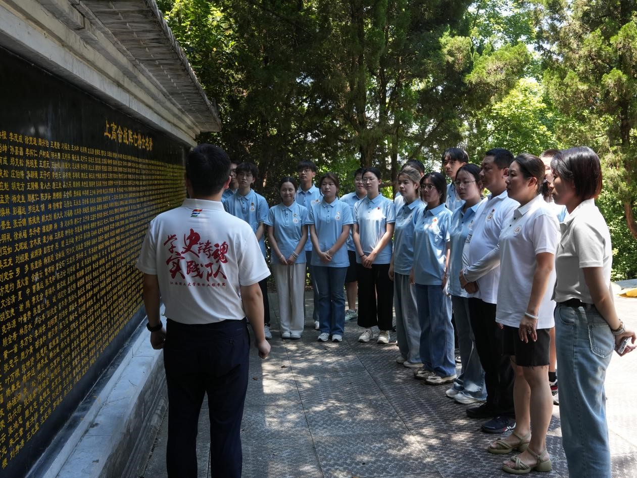 活动在庄严肃穆的抗日阵亡将士陵园前拉开帷幕。实践队员在此拜谒了上高会战阵亡将士陵园,重温了上高会战重要史实,瞻仰了上高会战阵亡将士名录,对上高会战期间牺牲的先辈英雄深切缅怀。英雄战死山河国,浩气长存满乾坤。全体人员在上高会战阵亡将士墓前肃立默哀并开展爱国主义教育专题“微团课”,向革命先烈致以崇高敬意,实践队员深刻感悟到了抗日将士们以天下兴亡、匹夫有责的爱国情怀,视死如归、宁死不屈的民族气节,不畏强暴、血战到底的英雄气概与百折不挠、坚忍不拔的必胜信念。