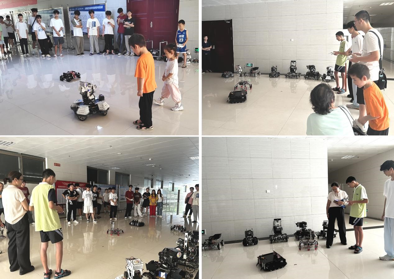 7月10日上午,在熊飞龙老师的带领下,同学们于南昌校区图书馆一楼大厅进行夏令营活动实践展示,其中包括人形机器人、仿生机器人、自动水果采摘机器人、履带式机器人、异形足机器人、平衡独轮车以及全自动智能竞赛小车等。大发娱乐