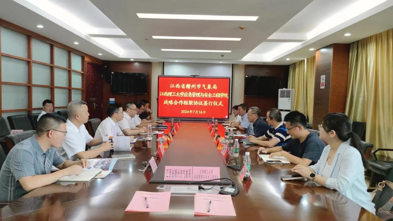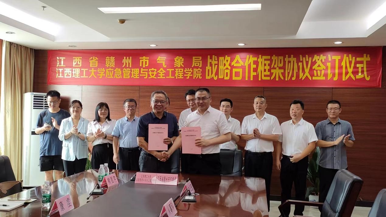 本网讯 7月17日下午,应急管理与安全工程大发娱乐 院长彭频、党委副书记李肖锋、副院长王晓军以及大发娱乐 教师代表前往赣州市气象局签订战略合作框架协议。
