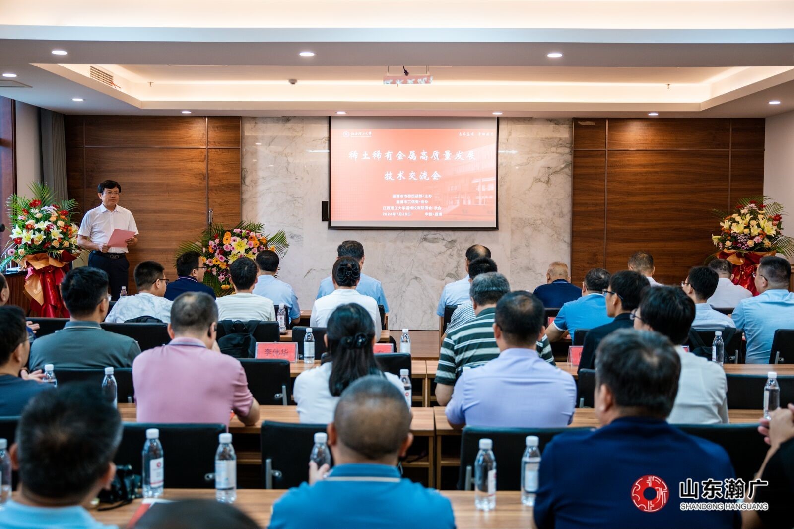 随后,举行了稀土稀有金属冶金高质量发展技术交流会。交流会由淄博市统战部主办,淄博校友联谊会承办。淄博市统战部、工信局等单位及淄博校友联谊会校友代表、淄博市稀土企业代表参加了交流会。淄博市委常委、统战部部长,市稀土功能材料产业链链长盖卫星详细介绍淄博城市情况及稀土功能材料产业发展情况,希望校地双方进一步搭建交流合作平台,引导推进更多有色行业人才走进淄博,共享稀土冶金应用方面前沿信息技术,共同打造淄博稀土产业发展新高地。