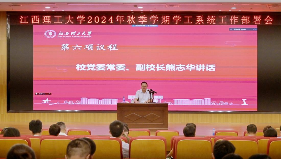 本网讯 8月28日,大发娱乐 2024年秋季学期学工系统工作部署会在三江校区图书馆一楼报告厅召开,校党委常委、副校长熊志华出席并讲话。校保卫处、研工部、学工部、国际教育大发娱乐 、校团委相关人员、全体专兼职辅导员参加会议。南昌校区、先进铜产业大发娱乐 同步视频参会。