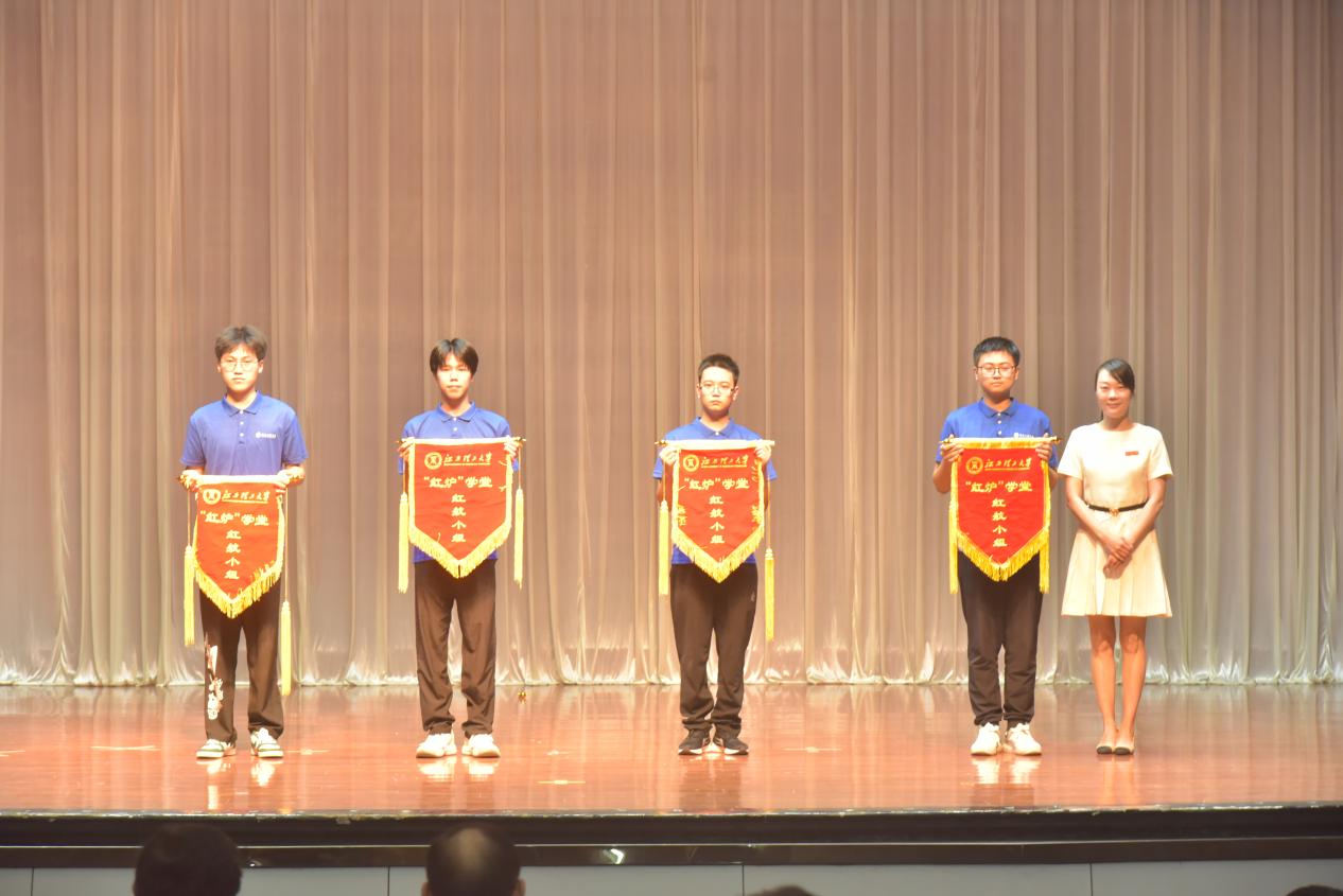 “红炉”学堂“红志”综合素质提升组代表授旗。廖春发为新生代表发放“红炉”学堂学习记录本并宣布开班。