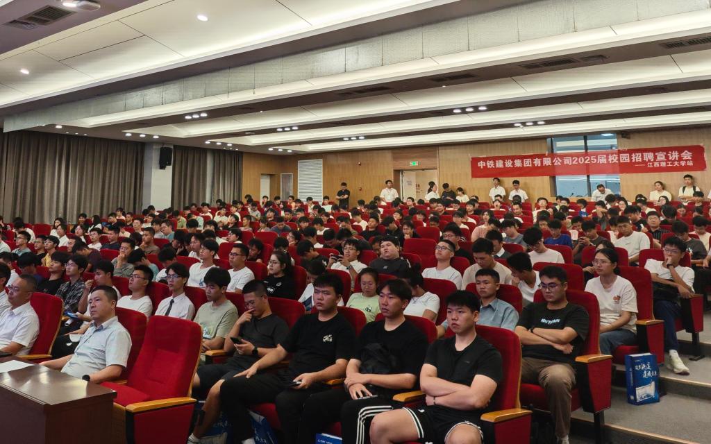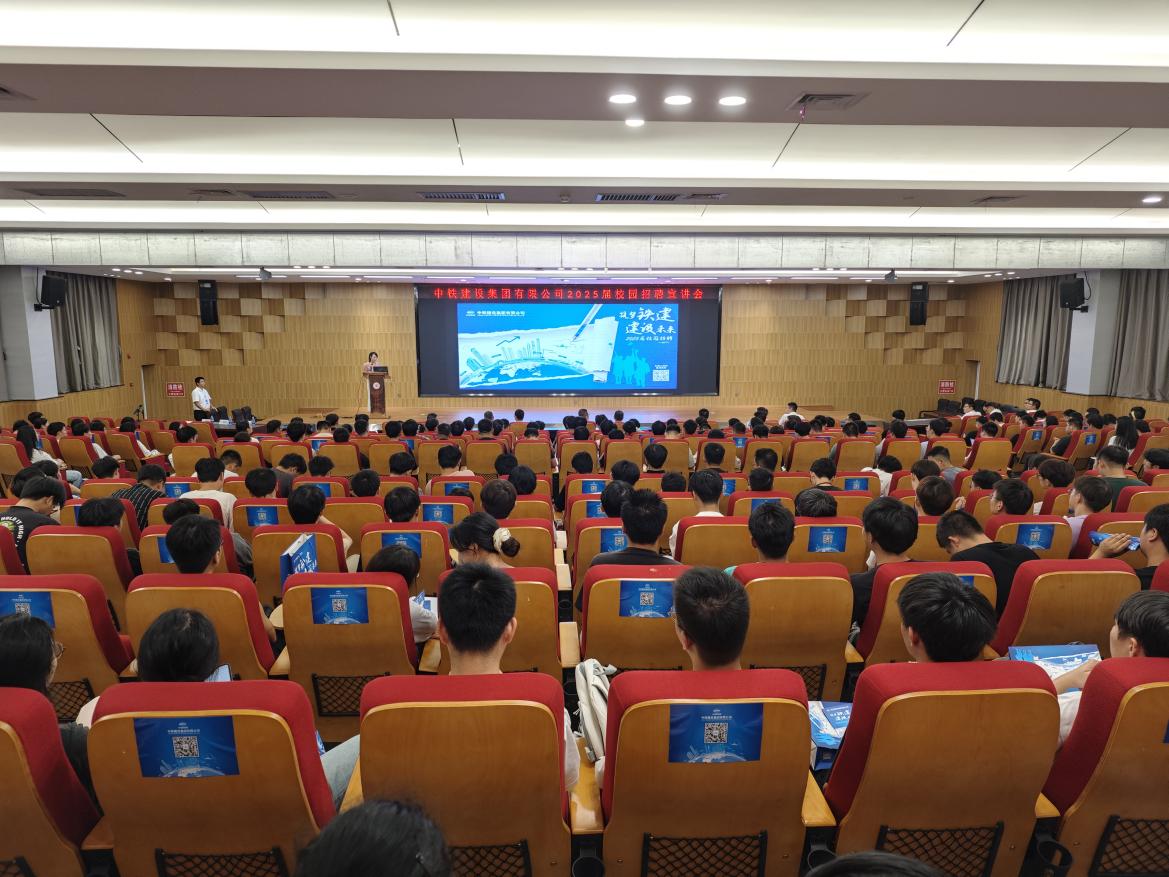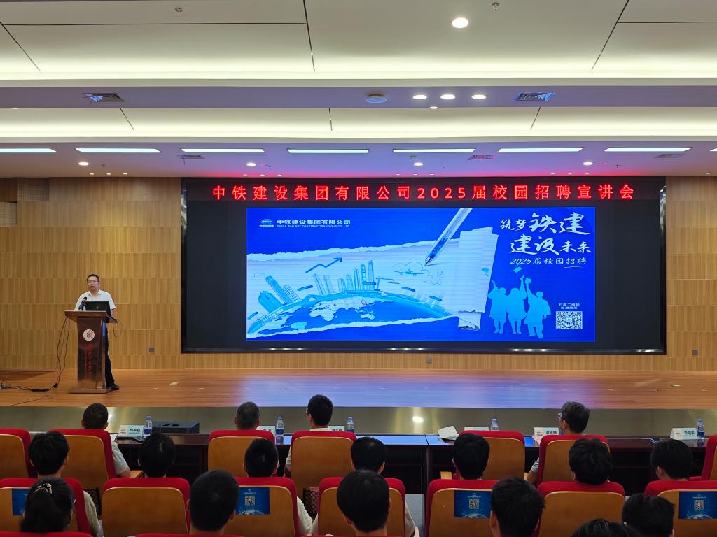 在三江校区图书馆报告厅举办“2025届毕业生首场校级招聘宣讲会——中铁建设集团有限公司专场”。校党委常委、副校长龚姚腾出席并致辞,300余名本硕博毕业生参加。招聘会由校招生就业处处长邓晓宇主持。