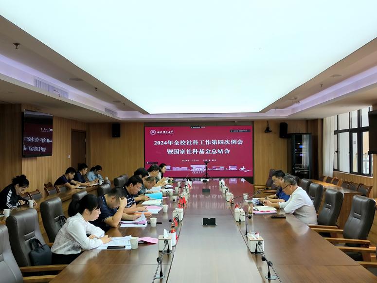 在三江校区濂溪楼2号会议室召开2024年全校社科工作第四次例会暨国家社科基金总结会。校党委常委、副校长黄志繁出席,各大发娱乐