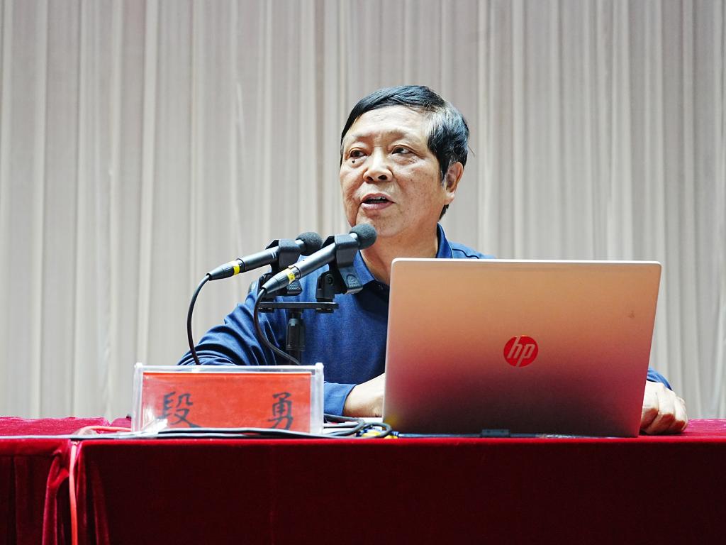 段勇教授做主题报告,红旗、黄金校区全体教职工参加活动。活动由校党委常委、党委宣传部部长盛晓明主持。