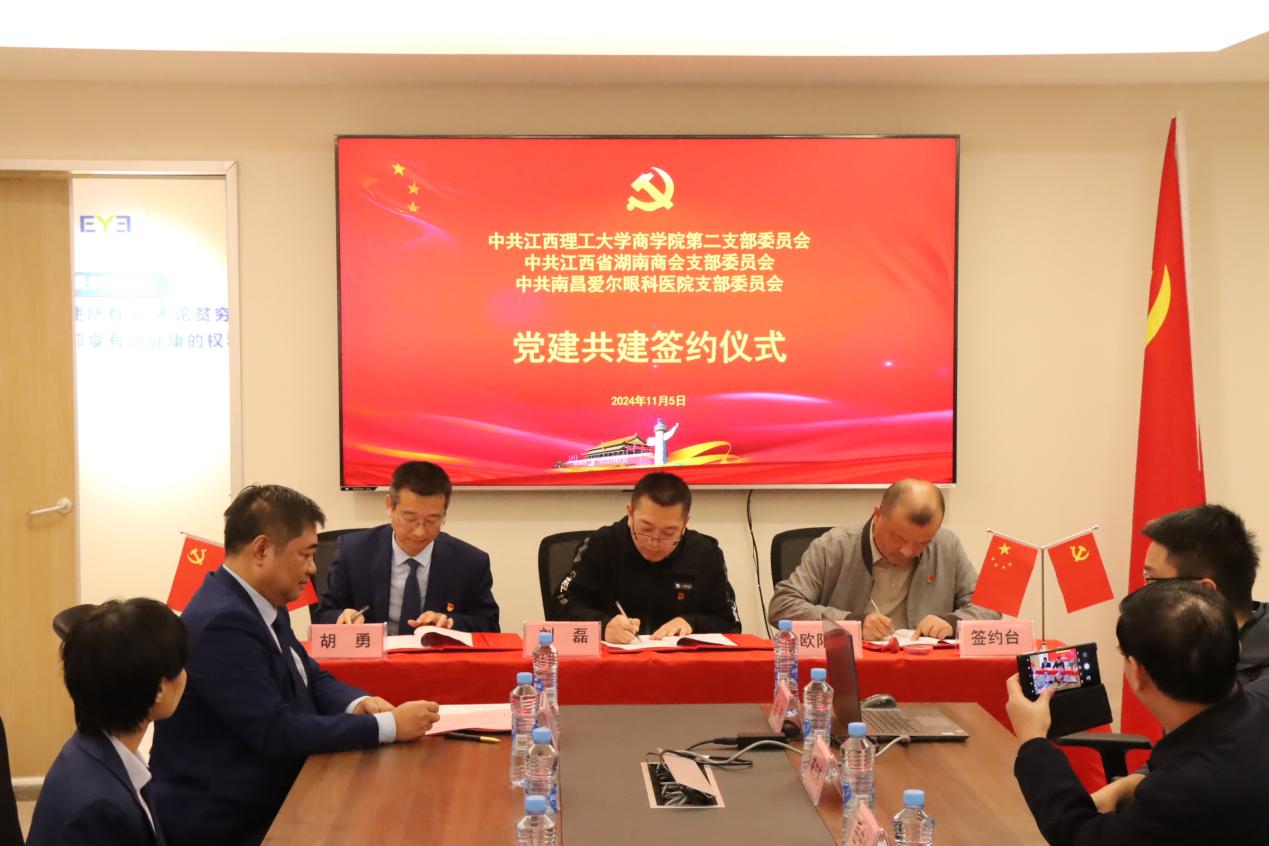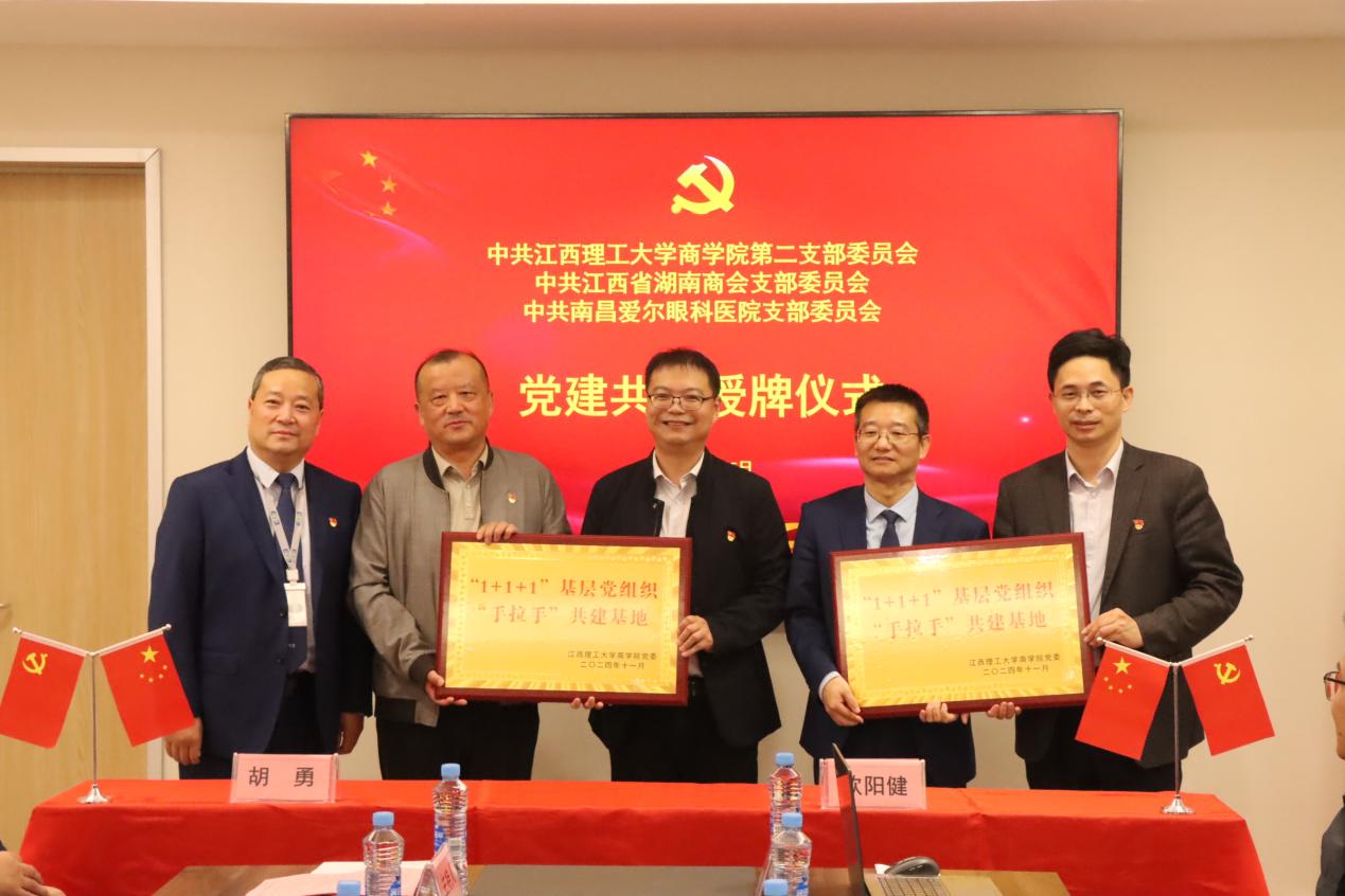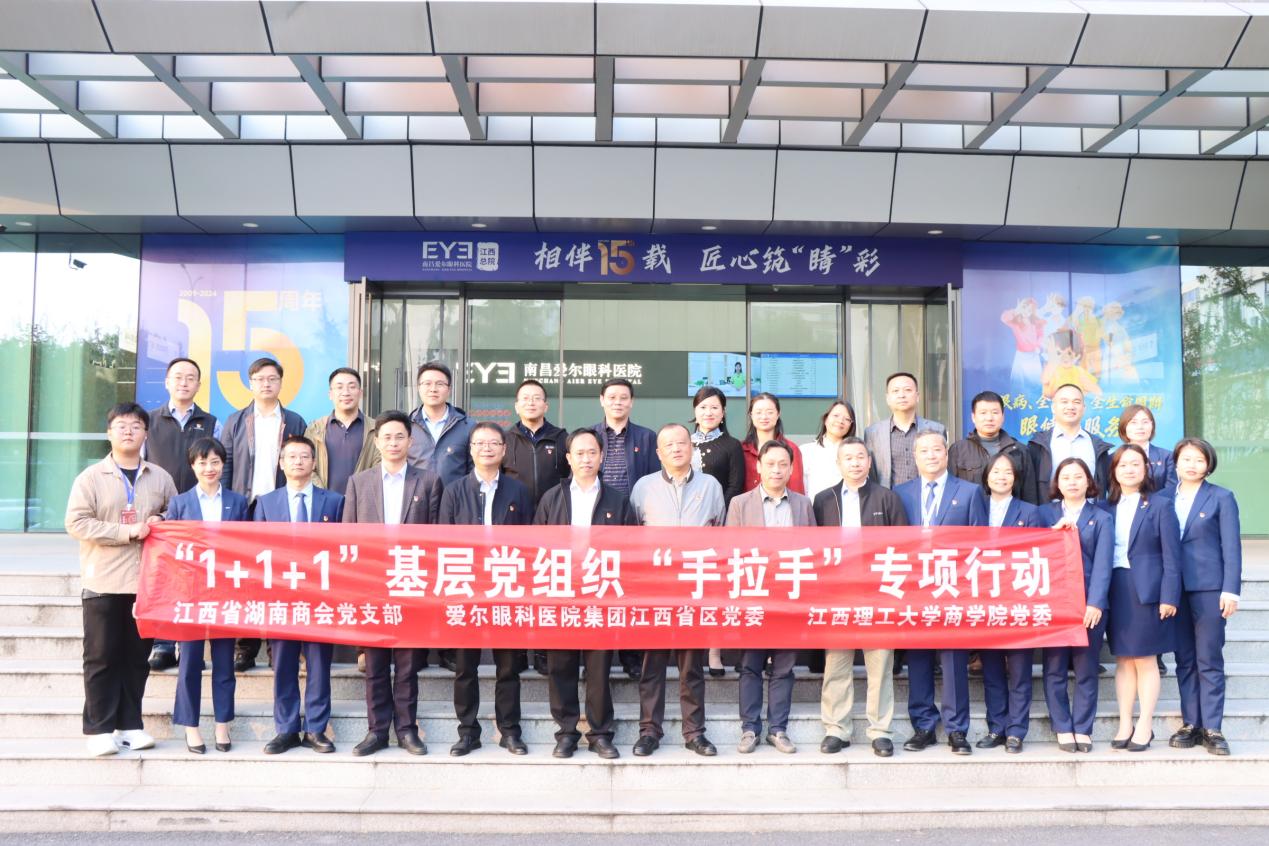 党委与江西省湖南商会党支部、爱尔眼科医院集团江西省区党委在南昌爱尔眼科医院(江西总院)共同开展“1+1+1”基层党组织“手拉手”共建仪式暨主题党日活动。