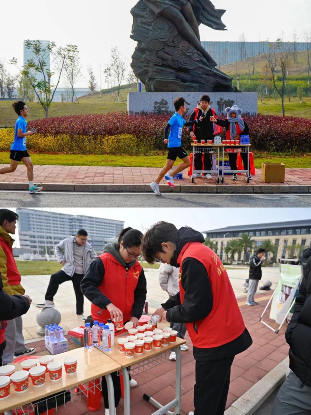 活动现场气氛热烈,参赛者们精神抖擞。教职工队伍格外引人注目,不少年逾五十的老师身姿矫健地奔跑在队伍中,他们用实际行动诠释着对运动的热爱和对健康生活的追求。年轻的学生们也毫不逊色,充满活力的身影在校园道路上穿梭,展现出青春的朝气与蓬勃向上的力量。师生们共同奔跑,汗水挥洒在赛道上,青春洋溢在校园内,成为了江理一道靓丽的冬景。