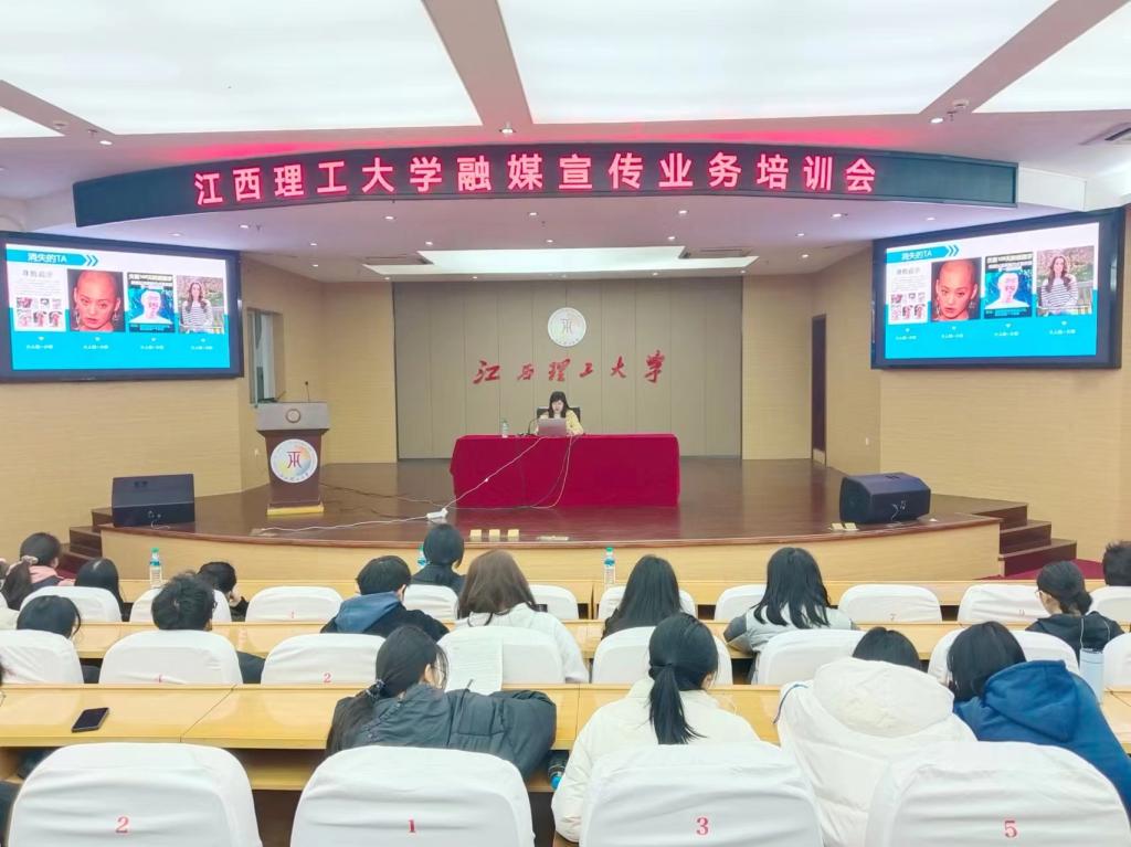 本网讯  12月8日上午,大发娱乐 在红旗校区图书馆赵氟隆报告厅举行融媒宣传业务培训会,此次培训邀请了赣州市融媒体中心时政新闻部副主任、首席记者张惠婷,赣州市融媒体中心新媒体编辑部副主任、首席编辑刘芬主讲,大发娱乐 融媒体中心指导老师和成员以及各大发娱乐 宣传部成员近两百人参加培训。