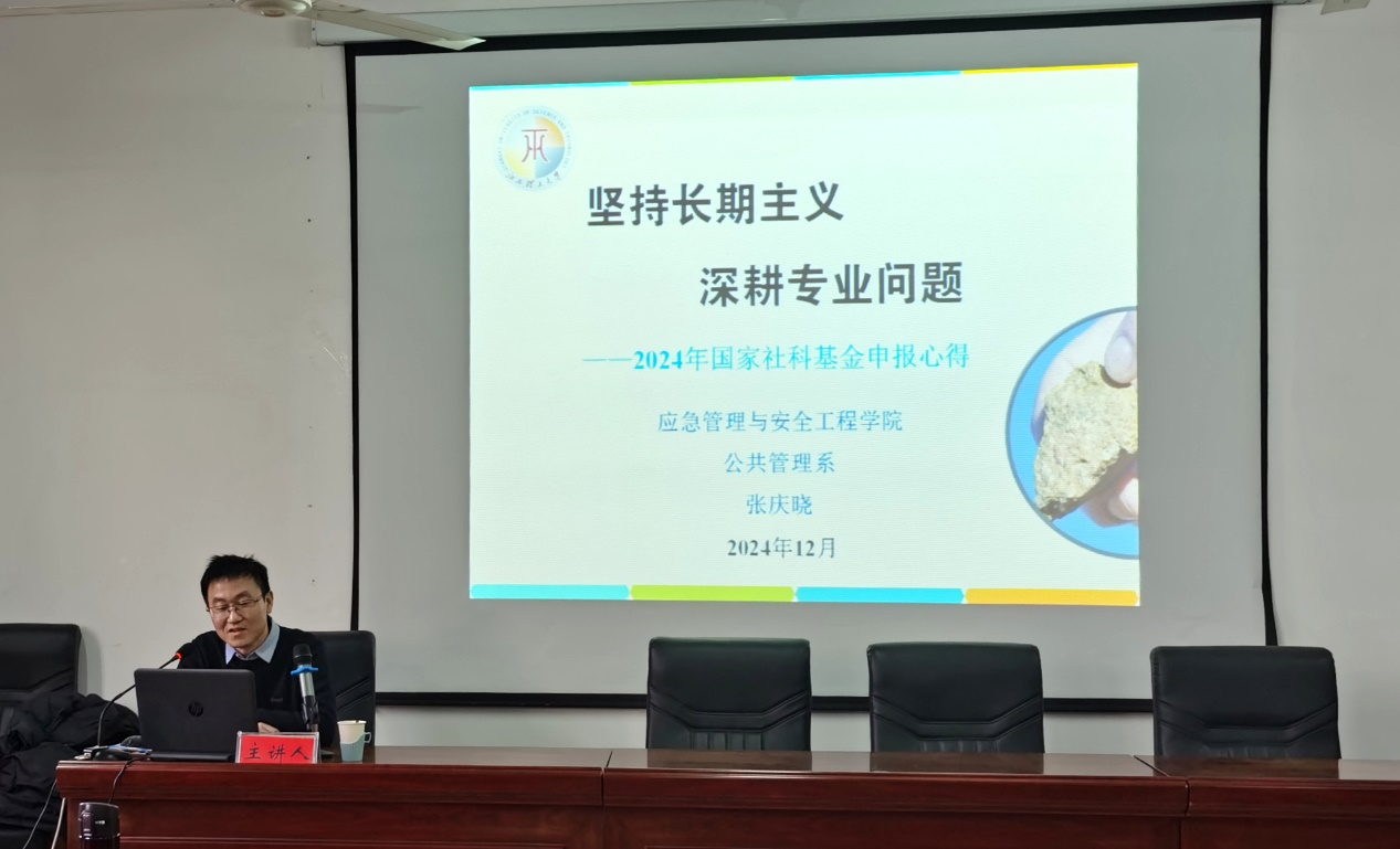 教师、2024年度国家社科基金西部项目获批者张庆晓博士以“坚持长期主义,深耕专业问题”为题分享了申报心得。他从选题依据、思路方法、研究基础等多维度展开细致的剖析,并给出了一些具体、可借鉴性强的建议。