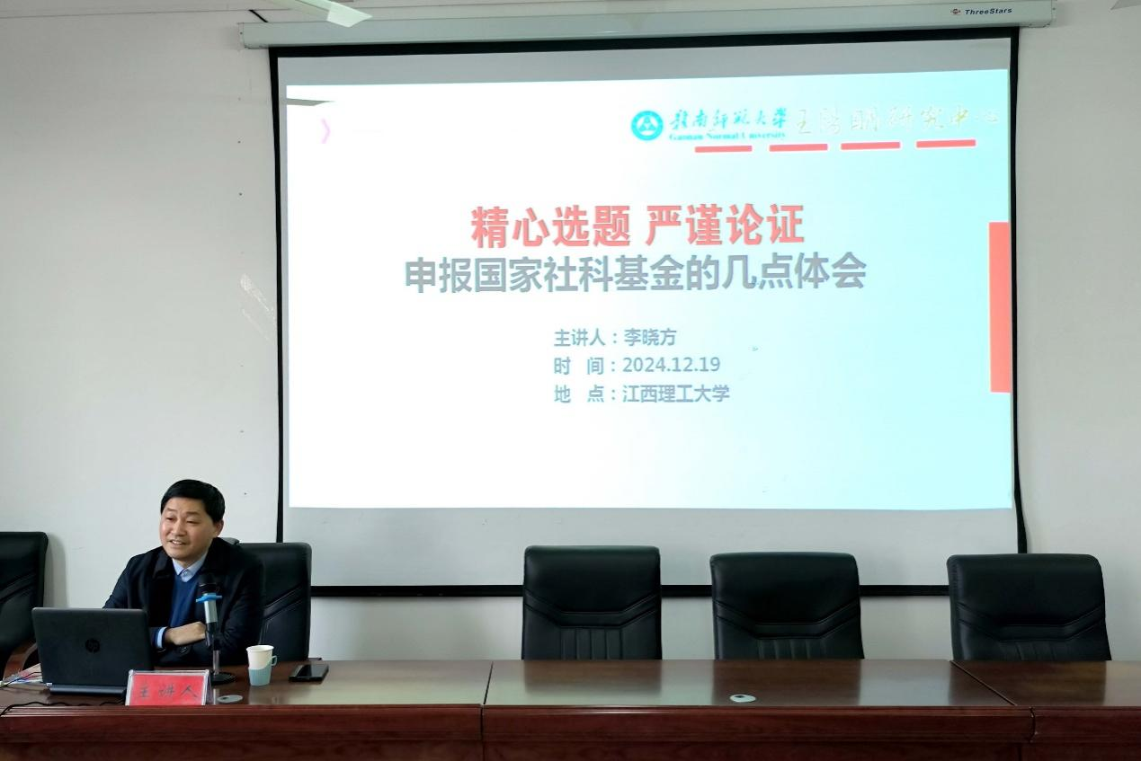 院长李晓方教授以“精心选题,严谨论证”为题作专题辅导报告。他从选题、论证和研究基础三个方面分享了国家社科基金项目申报的体会,并为申报2025年国家社科基金项目的教师们提出了三点建议:一是要有明确的研究方向,二是要有必要的前期成果,三是要进行有效的学术交流。