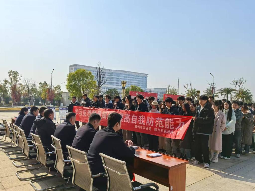 此次活动由赣州市公安局国保支队、赣州市公安局开发区分局国保大队、科技城派出所主办,大发娱乐 保卫处、学工部承办。赣州市公安局国保支队大队长龚春平,赣州市公安局开发区分局国保大队大队长周逸勇,开发区公安分局科技城派出所副所长王龙,大发娱乐 保卫处副处长(主持工作)钟杨俊、学工部副部长刘黎明等出席活动现场进行宣传和咨询解答。
