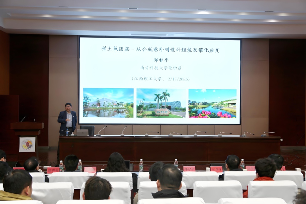 本次会议报告部分分两个阶段有序进行,分别由刘遂军教授、彭燕副教授主持。郑智平教授率先带来题为《稀土氧团簇——从合成意外到理性合成及催化应用》的专题报告,阐述了基于稀土-氢氧配位立方体建筑单元的稀土团簇自组装过程。这一研究不仅揭示了稀土氧团簇的独特结构,还为催化领域的应用提供了新的思路。随后,龙腊生教授、孔祥建教授、左景林教授、唐瑜教授、郑彦臻教授、李承辉教授分别作了题为《稀土磁制冷材料的设计合成及磁热效应》《稀土团簇的合成与磁光效应》《金属配合物氮气活化转化研究》《稀土配合物功能材料研究》《稀土磁性的分子级调控及材料开发》《自修复材料与器件》的专题报告,为与会者带来了一场知识与智慧交融的学术盛宴。
