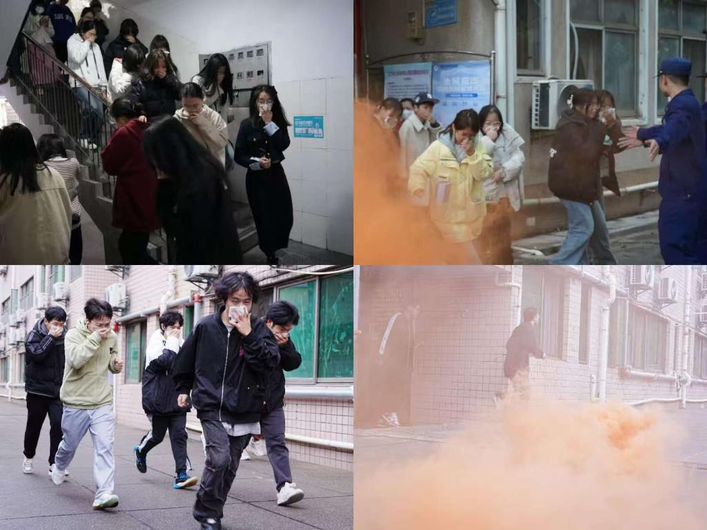 的应急处置水平。随着总指挥指令下达,各宿舍同步施放烟雾弹,消防警报随之响起。面对突如其来的“火情”,参演师生用湿毛巾捂住口鼻、弯腰沿墙快速撤离,楼栋管理员立即就位引导疏散。现场设置医疗救护点,全程配备AED和急救物资。