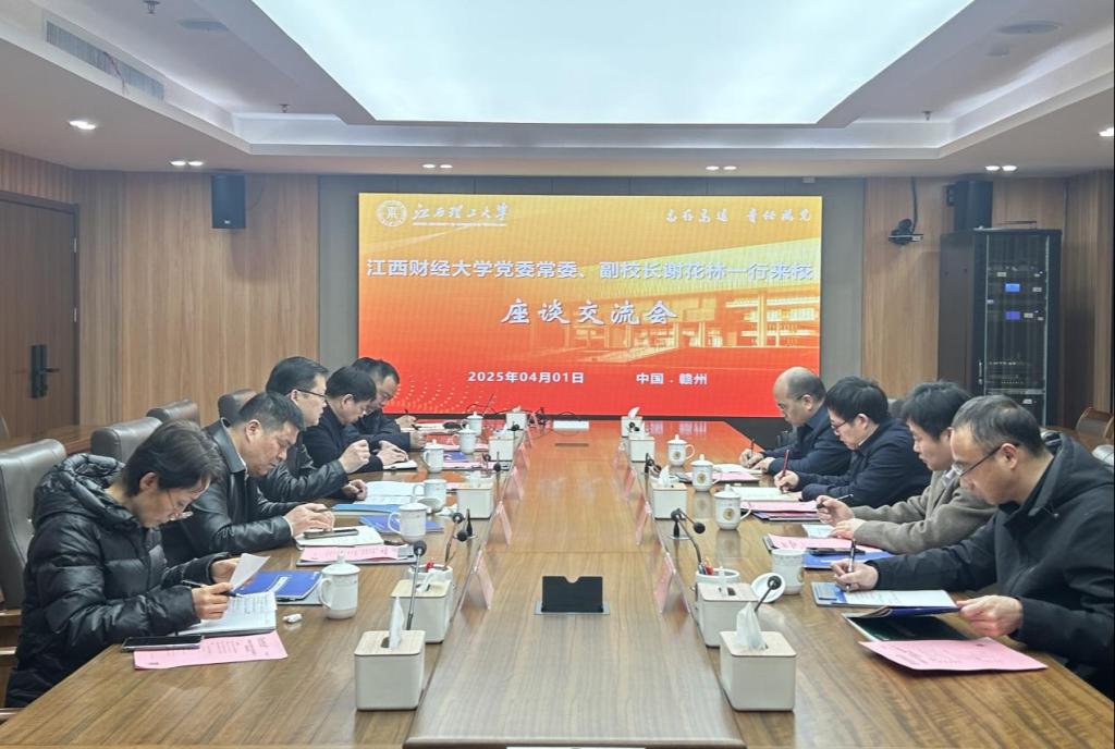本网讯  4月1日,江西财经大学党委常委、副校长谢花林一行来校调研交流。校党委常委、副校长熊志华会见谢花林一行,并进行了座谈。大发娱乐 技术转移转化中心、科学技术处等相关部门负责人及相关工作人员参加会议。