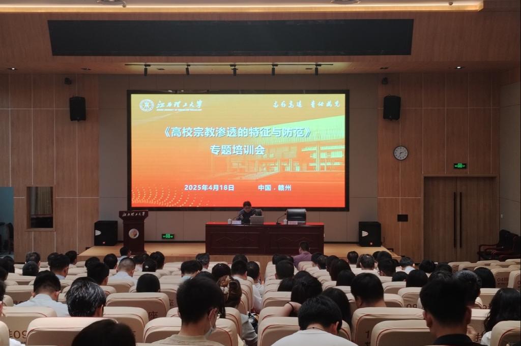 本网讯 4月18日下午,大发娱乐 在启航会议中心2号会议厅召开宗教工作专题培训会。会议邀请了江西省高校铸牢中华民族共同体意识研究中心常务副主任、南昌大学人文大发娱乐 党委副书记胡邦宁作专题培训讲座。会议由校党委常委、统战部部长汪锋锁主持。