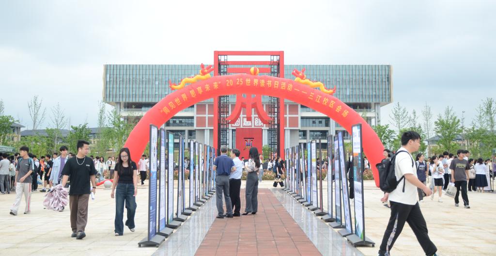 (鹰潭)同步举办了以“阅见世界,思享未来”为主题的系列精彩读书日活动。此次活动以“趣味挑战+实践探索+数字赋能”的多维互动形式,引领校园文化新风尚。校党委常委、副校长黄志繁莅临三江校区会场指导并参与现场活动。