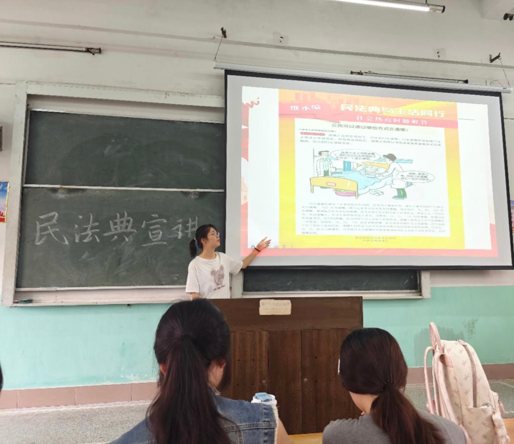 民法典宣讲团成员聚焦继承篇社会热点,以“病床遗嘱效力认定”典型案例为引,通过模拟某老人在两名无利害关系人见证下订立口头遗嘱的纠纷场景,详解见证人资格、遗嘱形式合法性等法律规则。宣讲团成员从“社会生活百科全书”的定位出发,系统阐释民法典总则编基本原则、继承编制度创新、人格权独立成编等重大立法突破,剖析法典七编1260条对公民权利义务的系统化规范。活动现场还通过案例问答、法条解析等形式,结合《中华人民共和国民法典》宣传片播放,阐释法典对青年学法、守法、用法的指导价值,引导学生在思辨中树牢法治信仰。