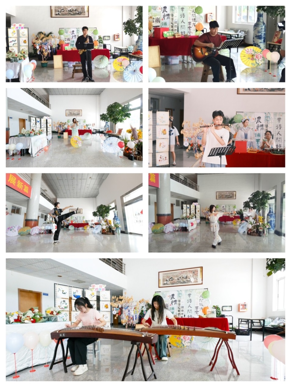 才艺表演环节将活动推向了高潮。身着汉服的舞者在水袖轻扬间演绎着古典舞的含蓄与优雅;悠扬的竹笛声、古筝声时而清越激昂,时而婉转低回,将中国传统音乐的意境之美娓娓道来;武术表演者的招式行云流水,刚柔并济,诠释着中华武术的力量与柔美。小提琴、吉他、萨克斯等西方乐器演绎的中国乐曲,完美融合了东方的典雅与西方的激情,展现出独特的中西合璧之美。这些精彩纷呈的表演让在场师生都沉浸在这浓郁的文化氛围中。一名参观中华才艺展的学生袁丹感叹道:“这些表演太棒了!让我不仅感受到传统文化之美,更懂得了传承的重要。我们要守护好这些文化瑰宝,让智慧永流传!”
