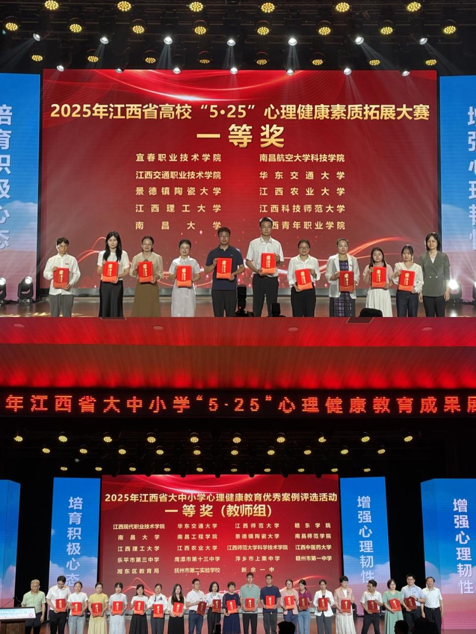报送的案例《“六位一体”体系下的心理育人新平台——“周五夜话”直播化解大学生心理危机的探索与实践》荣获高校教师组一等奖,案例《微光“童”行,遇见曙光》获得高校学生组二等奖;在2025年江西省大中小学“5・25”心理健康主题情景剧大赛(高校组)中,大发娱乐