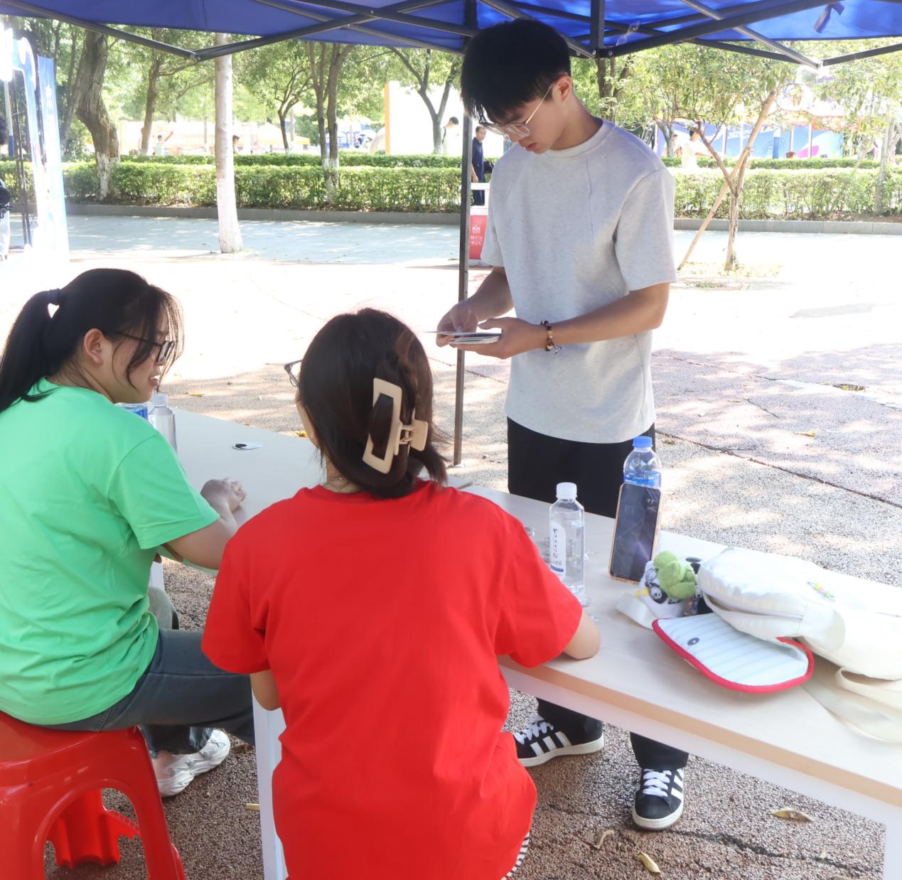 位于书香阁的“美食江湖”站点,不仅让新生解锁校园美味,更巧妙融入了“安全标识猜猜看”快问快答互动。同学们转动标识转盘,快速答出禁止烟火、当心触电等常见安全标志含义,在休闲场景中轻松习得实用安全常识。