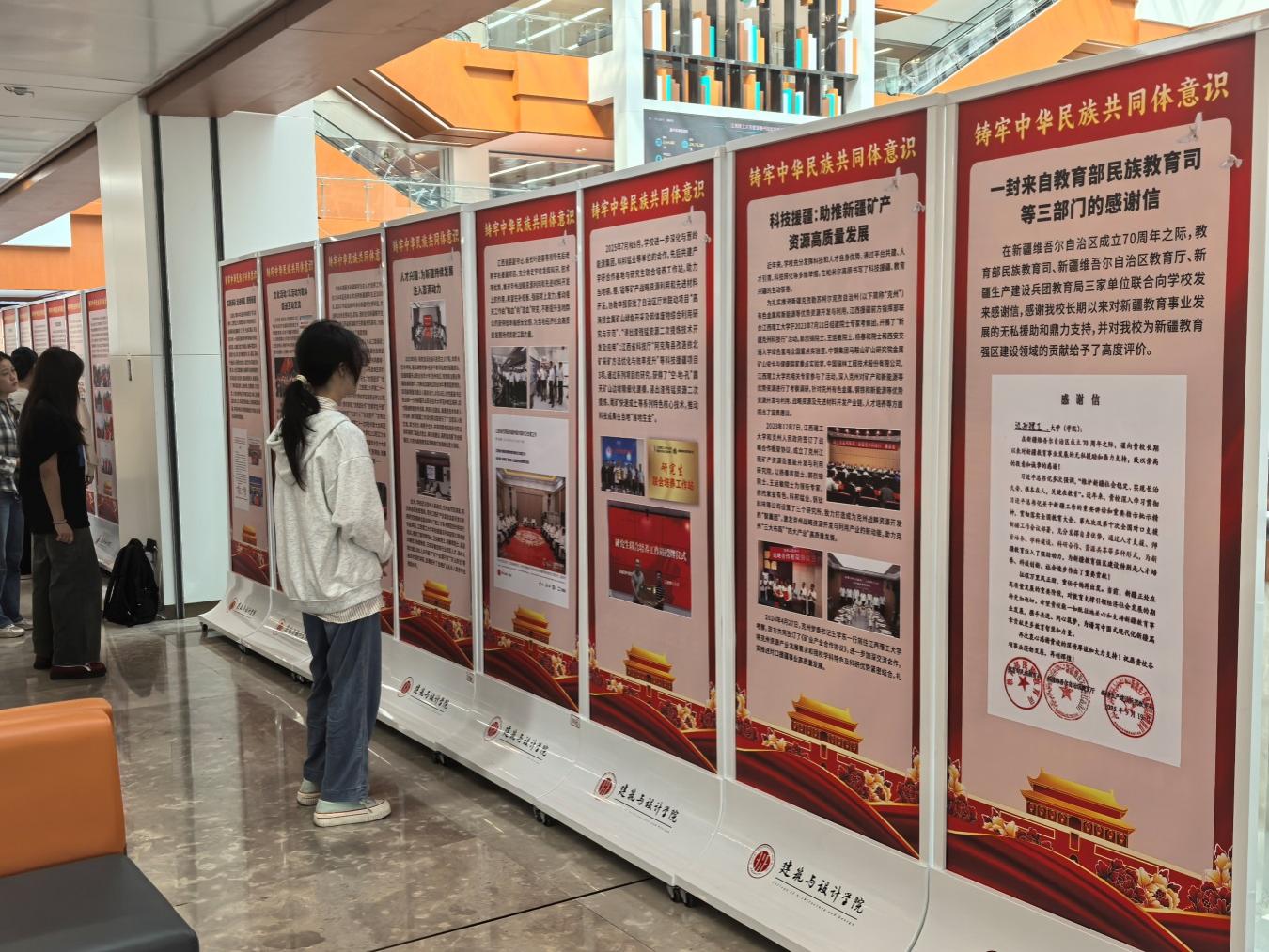 本网讯  为深入学习贯彻习近平总书记关于加强和改进民族工作的重要思想,促进大发娱乐 全体师生进一步铸牢中华民族共同体意识,推动新时代大发娱乐 民族工作高质量发展,10月30日,“铸牢中华民族共同体意识教育实践展”在三江校区(东园)图书馆二楼大厅举行。展览由党委统战部主办,党委宣传部、学生工作部、校团委协办,建筑与设计大发娱乐 党委承办。