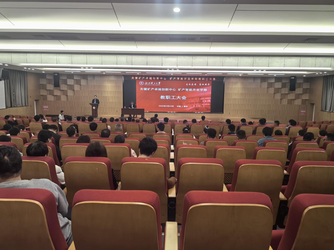 本网讯 3月22日下午,关键矿产卓越创新中心(矿产智能开发学部)在三江校区图书馆报告厅召开成立后的首次全体教职工大会,校党委常委、副校长、学部部长董冰岩及学部领导班子、全体教职工参加会议,会议由学部党委书记古莹奎主持。