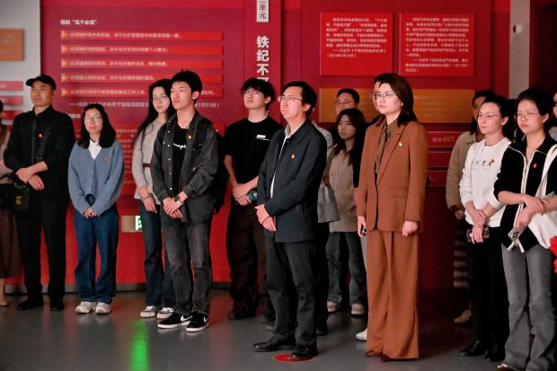 党委书记胡建华的带领下,师生们依次参观党性、党风、党纪三大主题展区,通过珍贵历史图片、详实文献资料和发生在赣州本地的反腐败典型案例,系统回顾党的创新理论发展脉络,在真实案例面前受警醒、明底线、知敬畏。